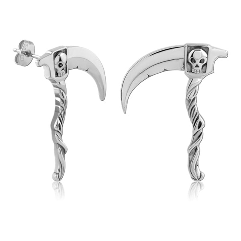 Reaper Scythe Stainless Stud Earrings 20 gauge Stainless Steel Pair