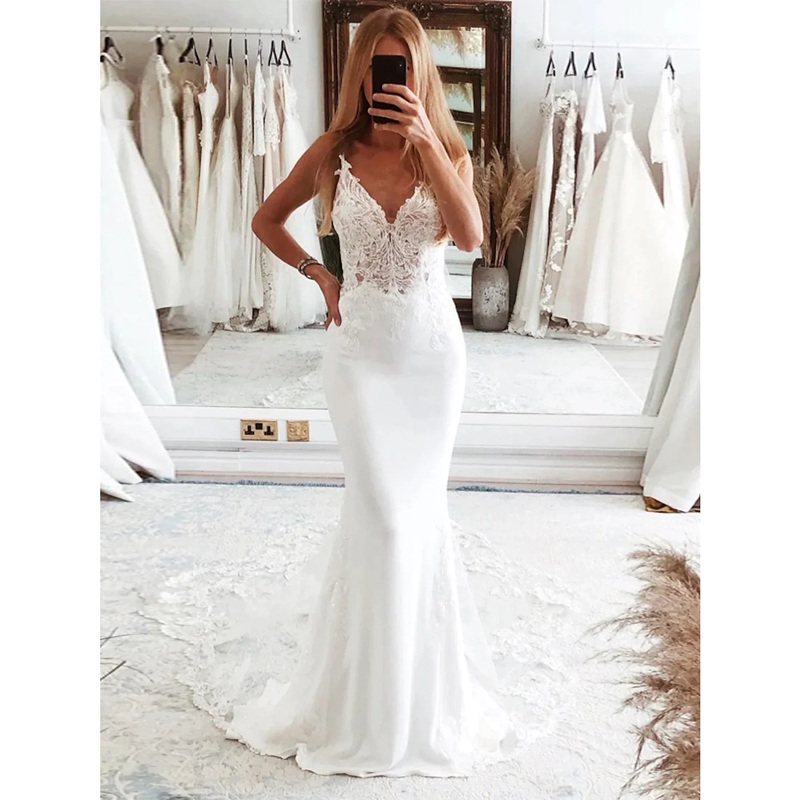 Be the first to review “Reception Formal Wedding Dresses Mermaid / Trumpet Camisole Sleeveless Court Train Tulle Bridal Suits Bridal Gowns With Appliques”