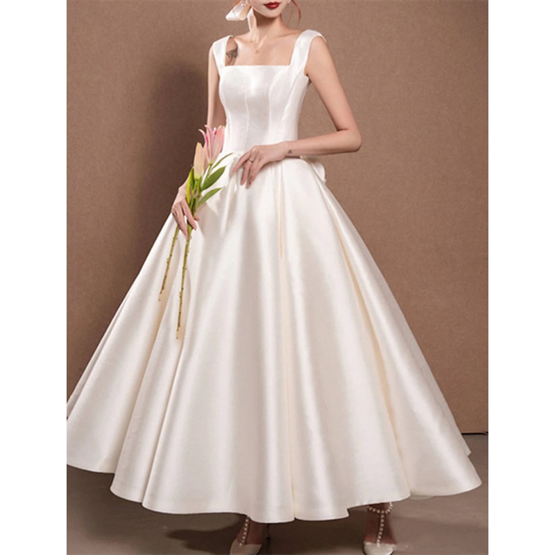 Be the first to review “Reception Simple Wedding Dresses Wedding Dresses A-Line Off Shoulder Cap Sleeve Tea Length Satin Bridal Gowns With Pleats Ruched” Cancel reply