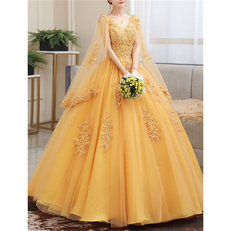 Reception Wedding Dresses in Color Wedding Dresses Ball Gown V Neck Long Sleeve Floor Length Lace Bridal Gowns With Appliques Summer Fall Wedding Party