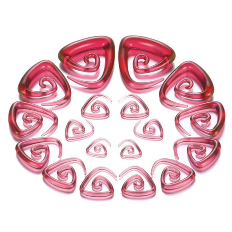 These trinity spirals are made from red acrylic. Choose your size and color below.