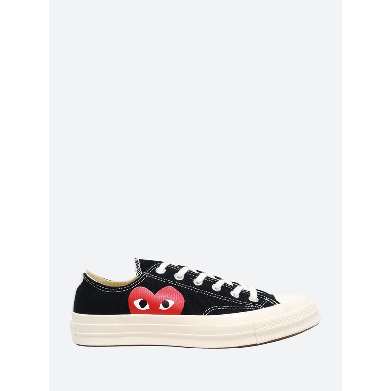 The Converse x Comme des Garons PLAY Chuck 70 features classic Chuck Taylor styling with a playful twist. The quirky heart-and-eyes logo, imagined by New York graphic artist Filip Pagowski and Comme des Garons Rei Kawakubo, is as recognizable as the Chuck Taylor itself.