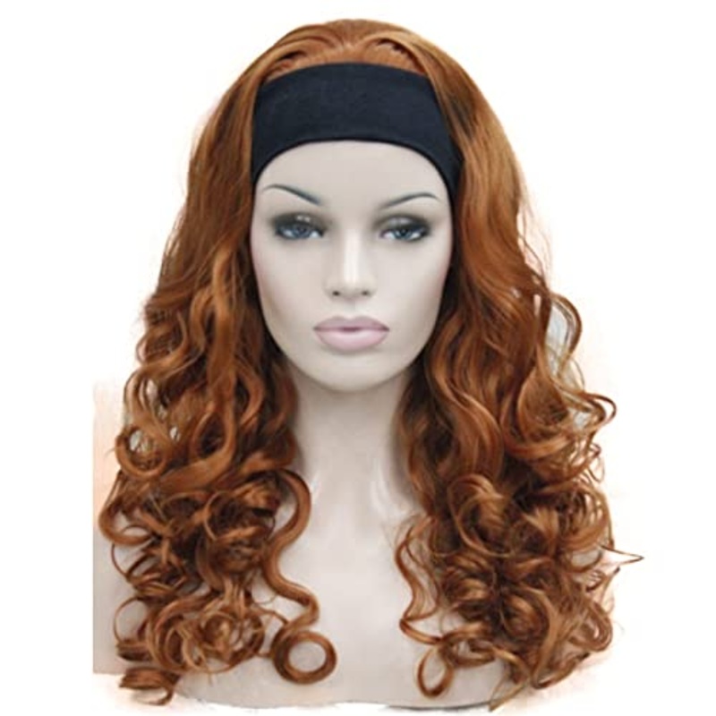 Red Long Curly Synthetic Headband Wig