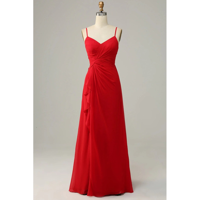 Horn/Tail V-neck and Ground Chiffon Bridesmaid Dress