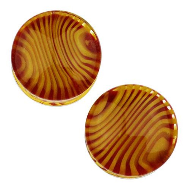 Red & Yellow Tiger Stripe Plugs by Gorilla Glass 2 gauge (6mm) Red & Yellow Pair