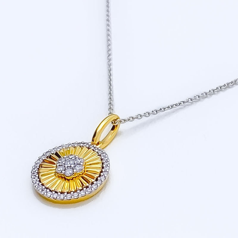 This Reflective Diamond + 18k Gold Pendant, weighing 1.65 grams, is a blend of classic elegance and modern design. Made with 18k yellow gold, it features a sleek finish that perfectly complements the brilliance of the diamond. The pendant boasts a 0.19ct d