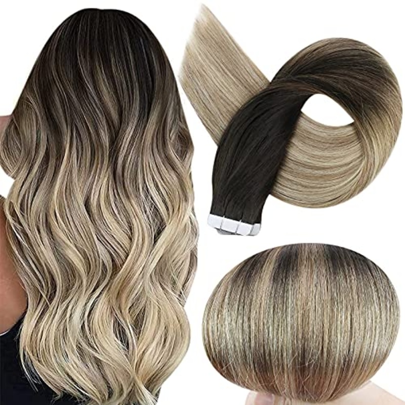 Full Shine Balayage Color Tape in Hair Extensions. These hair extensions are designed with an anti-shedding technology which features a unique sew line on the Tape Weft to Prevent Shedding and Tangling.Product DetailsHair Material: Remy Human HairTexture: Silky Straight, and Have a Natural Wave When Wet.Length: 12 InchColor: Balayage Color 1B/8/22Tape: American White TapeTape size: 0.8cm*4cmWeight: 1.5g/pcsQuantity: 20 pcs/packageTotal Weight: 30g/packageU