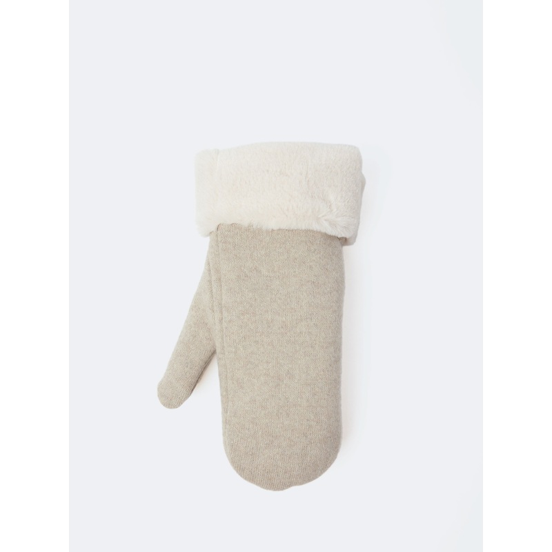 Wool blend mittens with a faux fur trimmed cuff.
