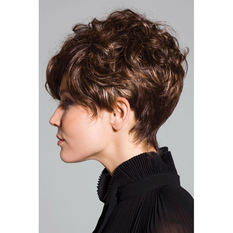 Dramatic tapered and asymmetric style wig with curly layers that gradually fall to the side of the face.Length: Fringe 7.5", Crown 5.5", Nape 1.5" Weight: 2.8 ozCap Size: AverageColor Shown: Almond Rocka-R (no longer available in this color)Wig Colors: Blu