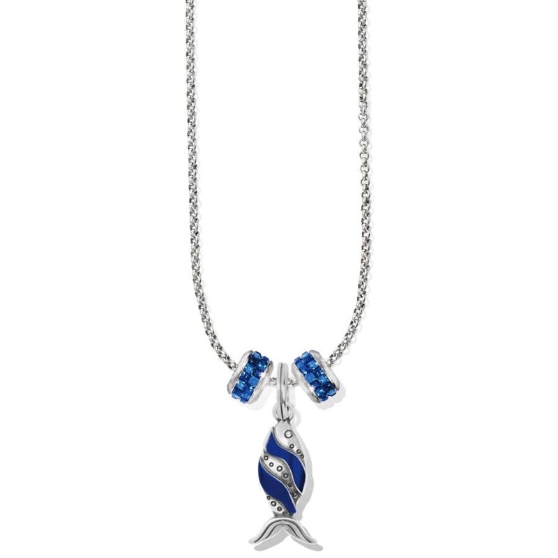 Add a nautical touch to your neckline, anytime, with this charm necklace featuring a blue fine crystal bead and hand-enameled fish charm.