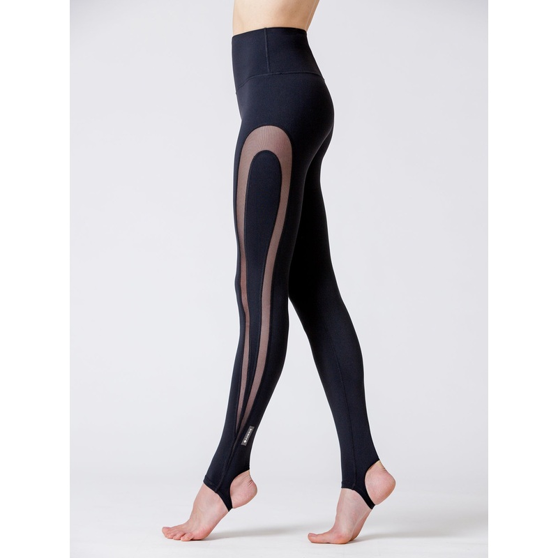 Figure-hugging yoga pants with stirrups to prevent ride up