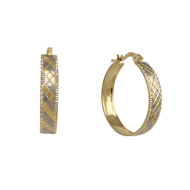 Rhombus Pattern Matte Finish Hoop Earrings (14K) 0.6 inch | 4.4 mm | 2.4 grams