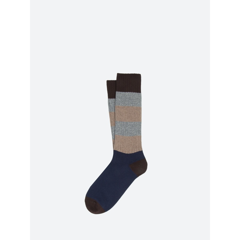 Socks in 100% cotton, ribbed knit and large stripes on the cuff.Mid-calf heightReinforced toe and heelStriped cuffsMade in ItalyMaterialsFabric Content: 100% cottonSize GuideOne size fits most.EU 39-44For additional size information, please visit our size