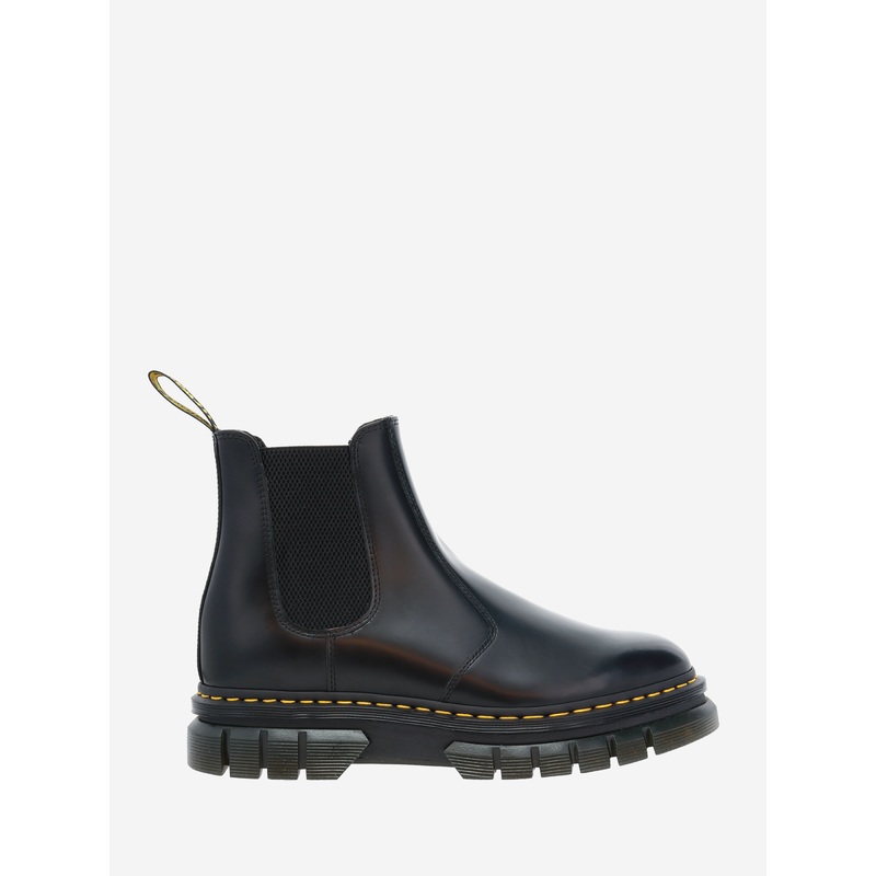 Dr. Martens Rikard Chelsea boot is made with oily waxed full grain leather. This easy-on, easy-off boot serves up a sure fit with its signature elastic ankle gusset.Ankle heightElastic gusset at the sidesPull loop at the heelRound toeYellow welt stitchingA