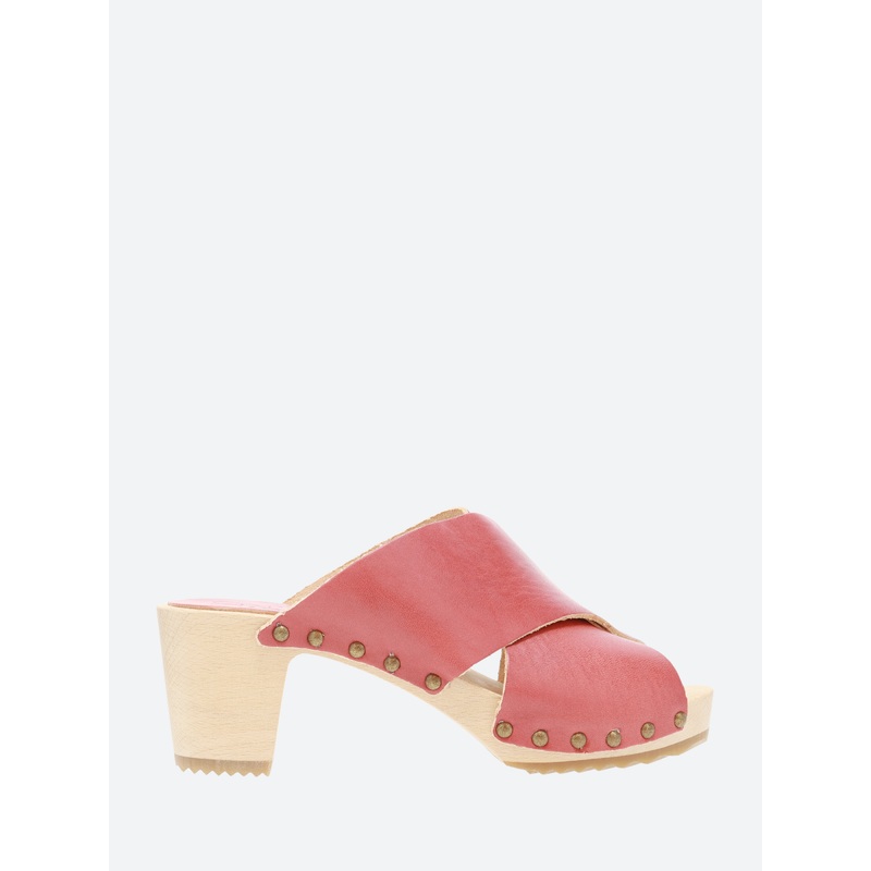 The Rita sandal from Bosabo is a warm-weather staple. Style them with socks when things cool down for a playful look.Peep toe muleCross strapAnatomical sole in beech woodAntiqued brass studsMeasurements:2.5" heel1" platformMaterialsUpper: cow leather with