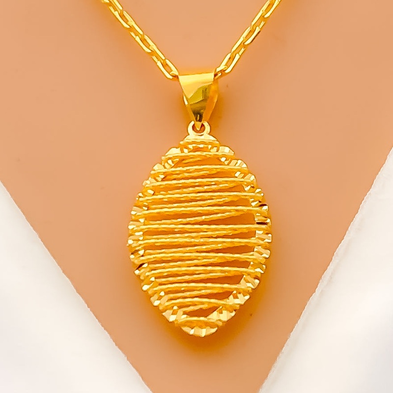 Ritzy Netted Marquise 22K Gold Pendant W/ Chain