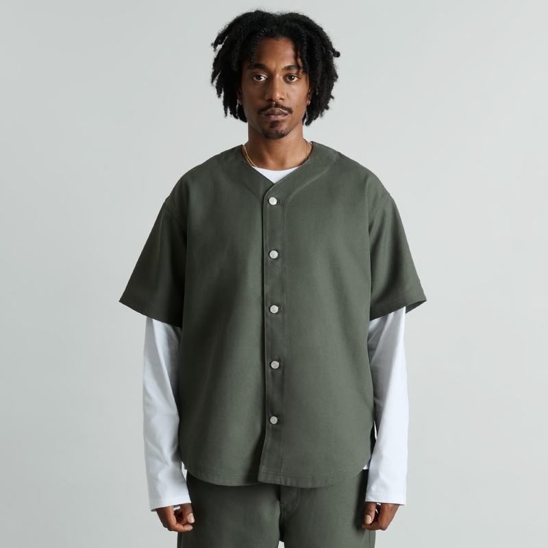 Cut from the same cloth as our New Era caps, we redeveloped our OG Poly Surge fabric into a range of versatile garments that match perfectly back to all your favorite headwear. The Riverside Baseball Jersey features:Button front closureScalloped hemPatch p