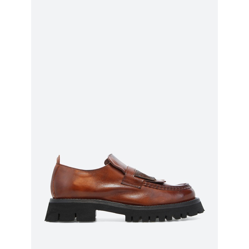 gravitypope Robella loafer has a classic style with a streamlined upper and minimal detailing. A double fringe decoration at the vamp gives it a modern look. Sits on a chunky lugged sole.