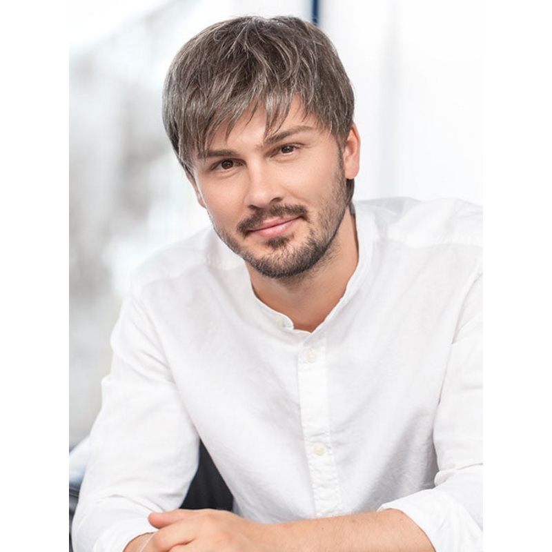 Roger 5 Stars by Ellen Wille is an attractive, classic mens cut with the highest level of comfort. It offers several features that give it a very natural look. The hand-tied cap, each hair is individually hand-knotted and creates natural movement, and is incredibly soft and comfortable to wear. Its ear-to-ear extended lace front creates the appearance of a natural hairline allowing for styling off the face. The hand-knotted monofilament top creates the appearance of natural growth where the hair is parted. The mono top allows for parting versatility. It is pre-styled and ready-to-wear out of the box.