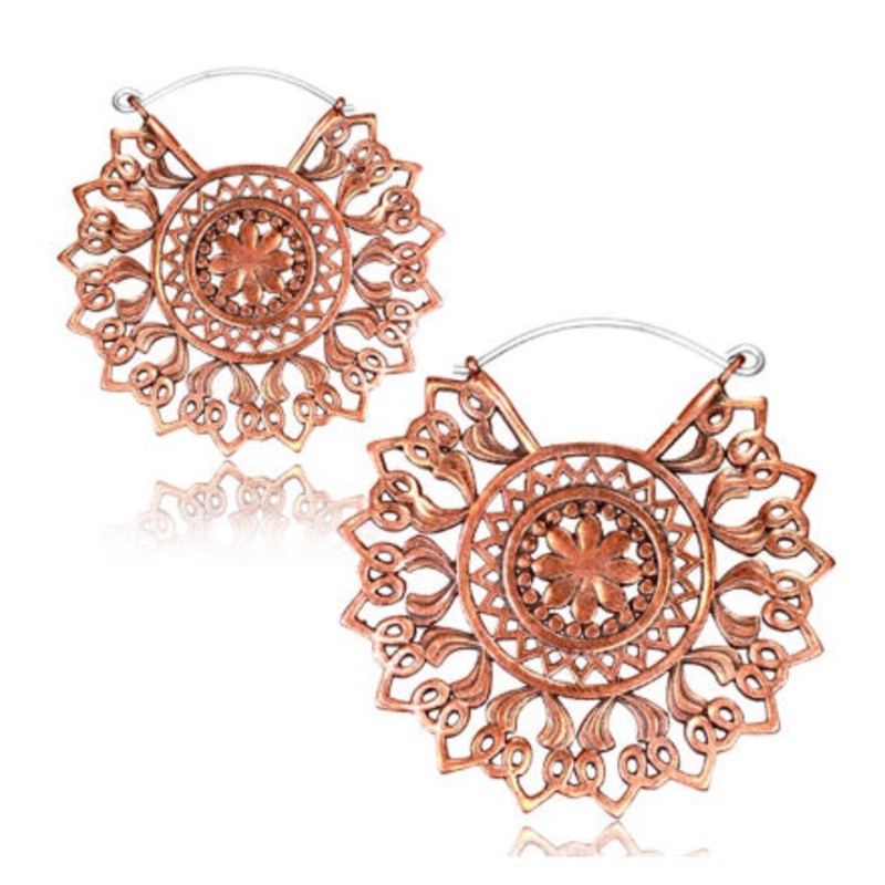 These20 gauge earrings are cast from solid rose brass. The wearable wire is made from sterling silver.
