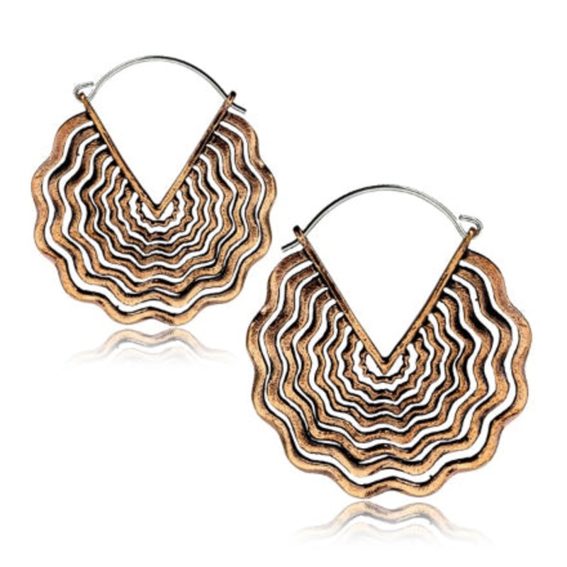 These 18 gaugesoundwaveearrings are cast from solidrose brass and approximately 40mm high x 36mm wide.