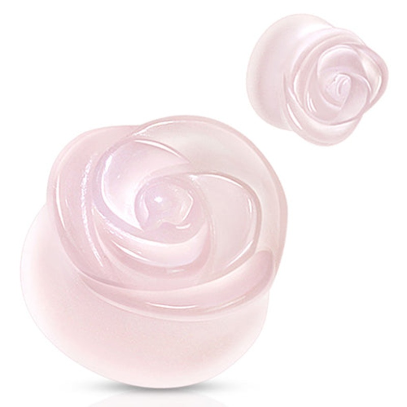 Rose Quartz Rose Plugs 2 gauge (6mm) Rose Quartz Pair