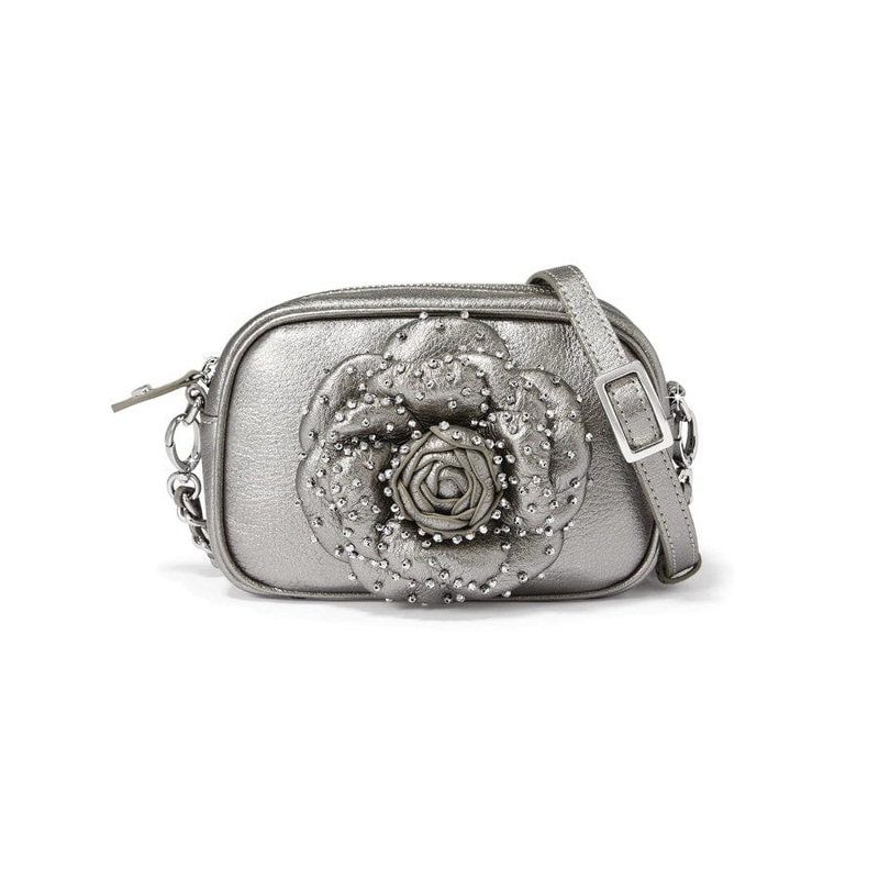 Never a wallflower, our Rosie is still the life of the party as she makes an artisanal debut. It takes almost 3 hours of loving care to hand-bead these hand-formed, dimensional Italian leather flowers.