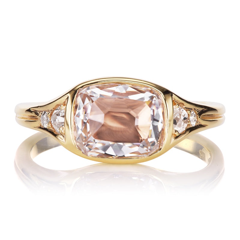 1.52 Carat Old Mine Cut Diamond with Pink Tone in Gold Bezel Setting