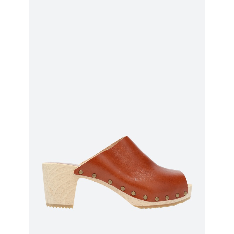 Bosabo clogs boast a timeless look that makes them a must-have item. They are a perfect fit for just about any outfit. Their heels offer a feminine touch that is sure to showcase your silhouette.Slip-onAntiqued brass rivetsPeep toeMeasurements:3" wooden he