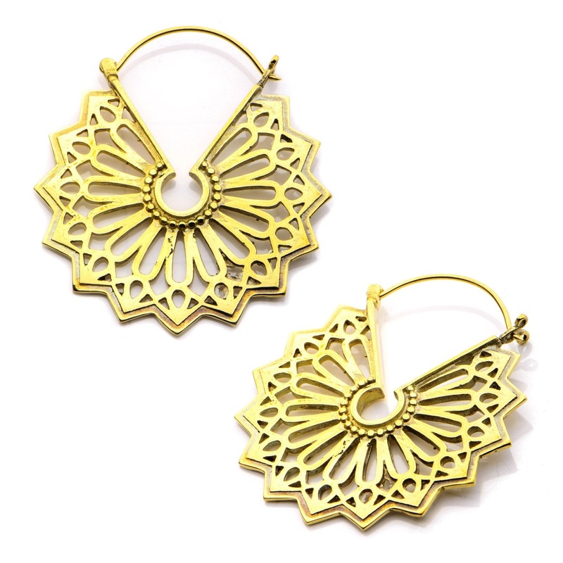These18 gauge Rotaearrings are cast from solid brass and approximately 2-1/8″ tall.