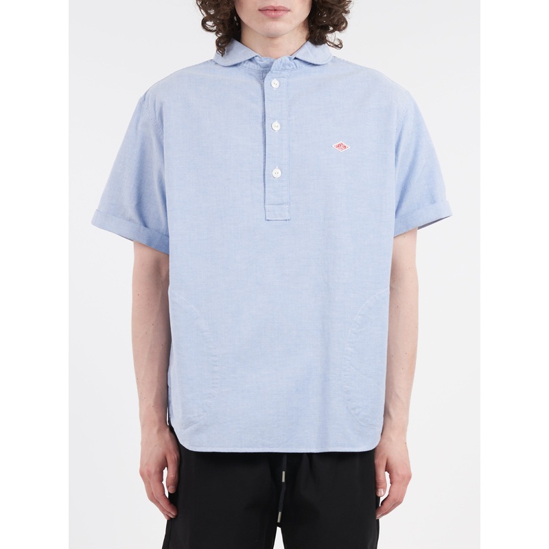 Danton pullover short-sleeved shirt made from a soft cotton oxford. The curved collar lends a casual and traditional workwear look.Round collarHalf button placketPull-over styleEmbroidered logo at the left chestShort cuffed sleevesSide seam pocketsRounded