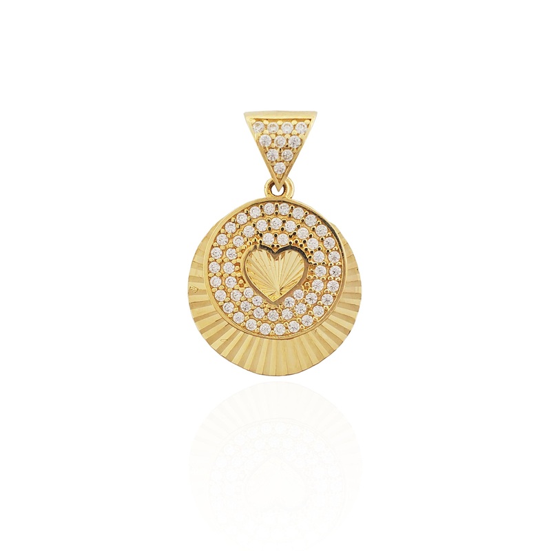 Precious Metal: 14 KaratYellow Gold.Gemstone: WhiteCubic Zirconia stones.Height: 23.85 mm (With Bail)Width: 16.05mmAvailable Weight: ~2.7 grams*To check availability in other sizes and designs please inquirevia e-mail or Instagram DM if necessary.**Necklac