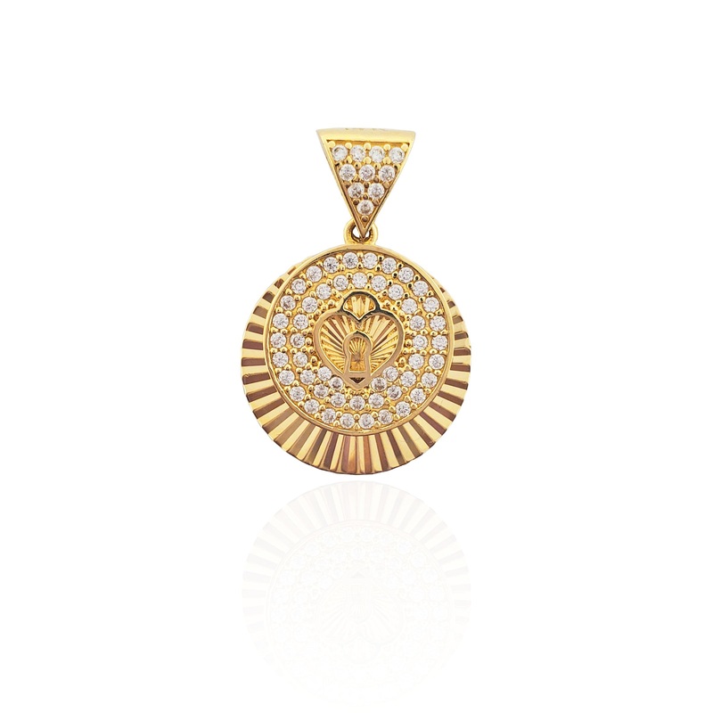 Precious Metal: 14 KaratYellow Gold.Gemstone: WhiteCubic Zirconia stones.Height: 23.55 mm (With Bail)Width: 16.00mmAvailable Weight: ~ 2.4 grams*To check availability in other sizes and designs please inquirevia e-mail or Instagram DM if necessary.**Neckla