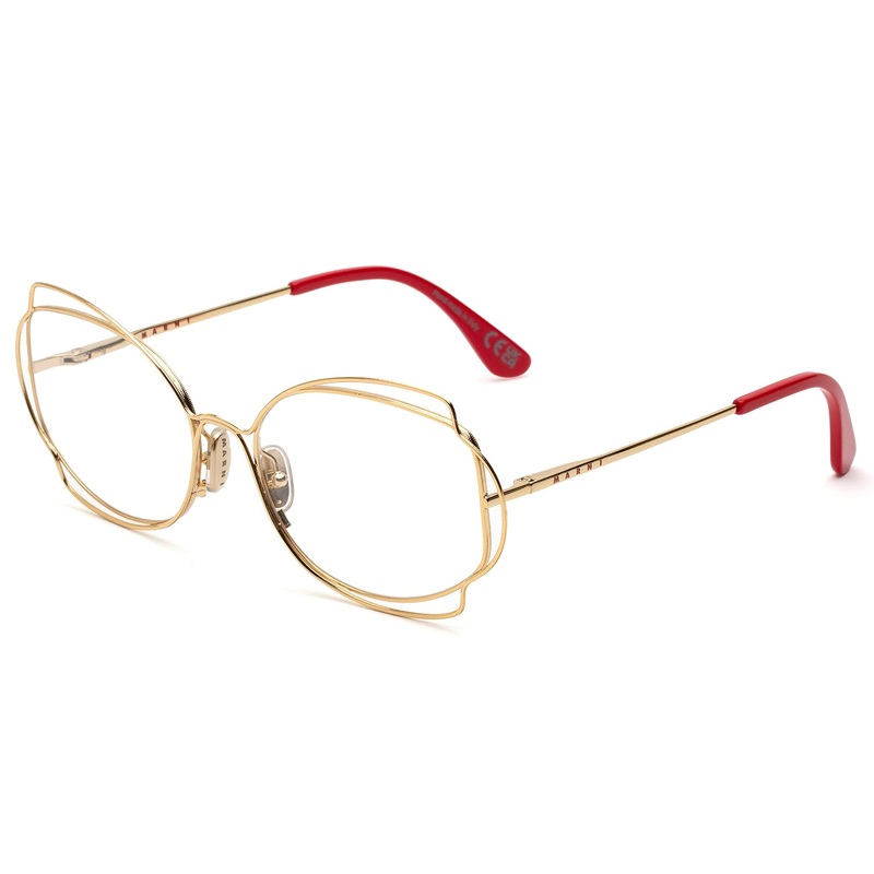 Designed exclusively for Marni, Route of the Sun is a playful optical frame inspired by Art Deco references. The silhouette features an all-metal construction with decorative metal wire encasing its oval lenses and forming an abstract floral shape. Include