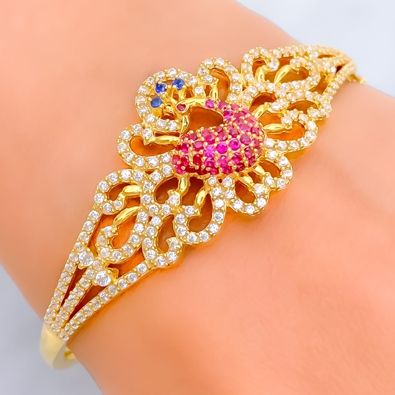 Royal Decorative 22k Gold CZ Peacock Bangle Bracelet