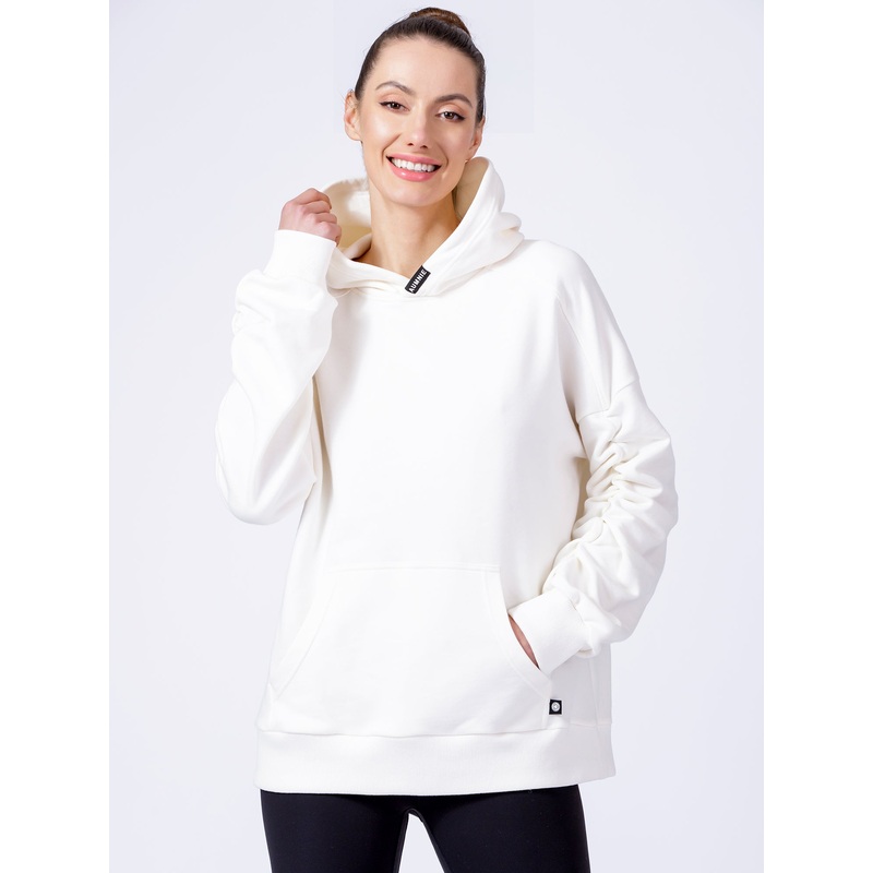 NATURAL COTTON+ AUMNIE select material+ Recyclable natural cotton+ Pre-shrunk and colour-fasted with sustainable methods to minimize environmental impactDescriptionDesigned with ruched sleeves for instant style boostRibbed cuffs and hem for adjustable leng