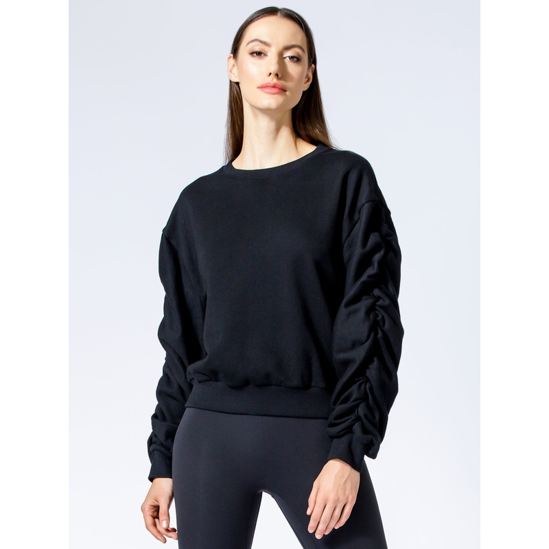 RUCHED RUNWAY SWEATSHIRT, BLACK