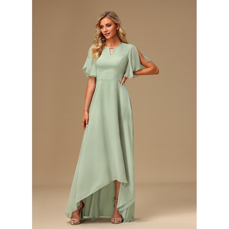 Be the first to review “Ruffled A-line Boat Neck Asymmetric Chiffon Bridesmaids Dress”