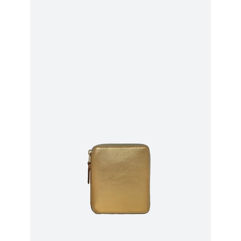 Gold leather full-zip wallet with change compartment. This spacious wallet is super functional with its many compartments, including card slots, paper currency pocket and an expanding change compartment.