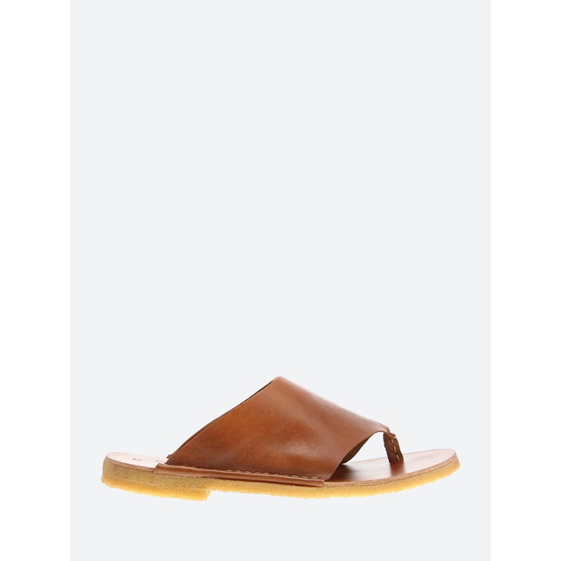 Slip-on thong sandals with high, wide leather vamp.Flat slip on thong sandalWide vampContrast stitchingCrepe rubber outsoleMaterialsUpper: leatherLining: leatherOutsole: leather with rubber insertsMade in ItalyPlease note that because of the handmade natur