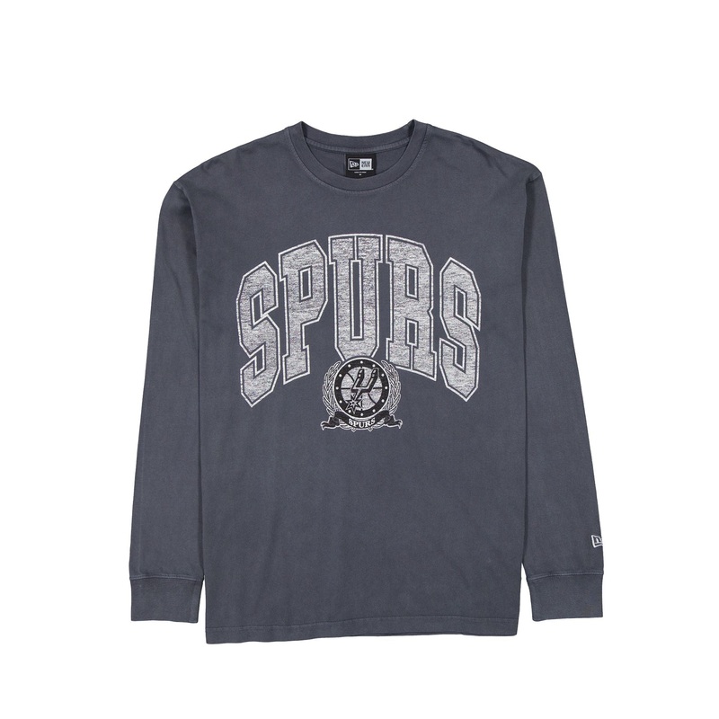 The San Antonio Spurs Oversized Essentials Long Sleeve T-Shirt features a distressed screen-printed Spurs wordmark above a team logo at the front.