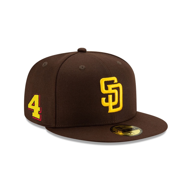 The San Diego Padres Player’s Weekend Arrez 59FIFTY Fitted Cap features an embroidered Padres logo at the front panels with a matching MLB Batterman logo at the rear and the player’s number at the right-wear side.