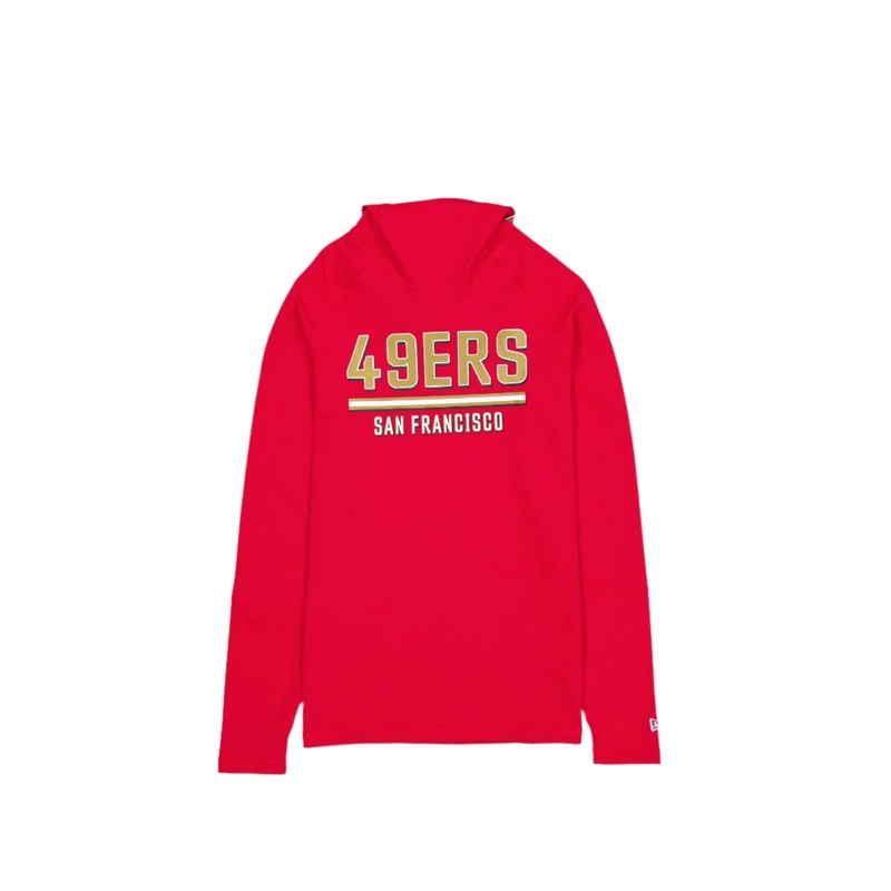The San Francisco 49ers Balaclava Hoodie features a screen-printed 49ers wordmark at the front with a team logo at the balaclava hood.