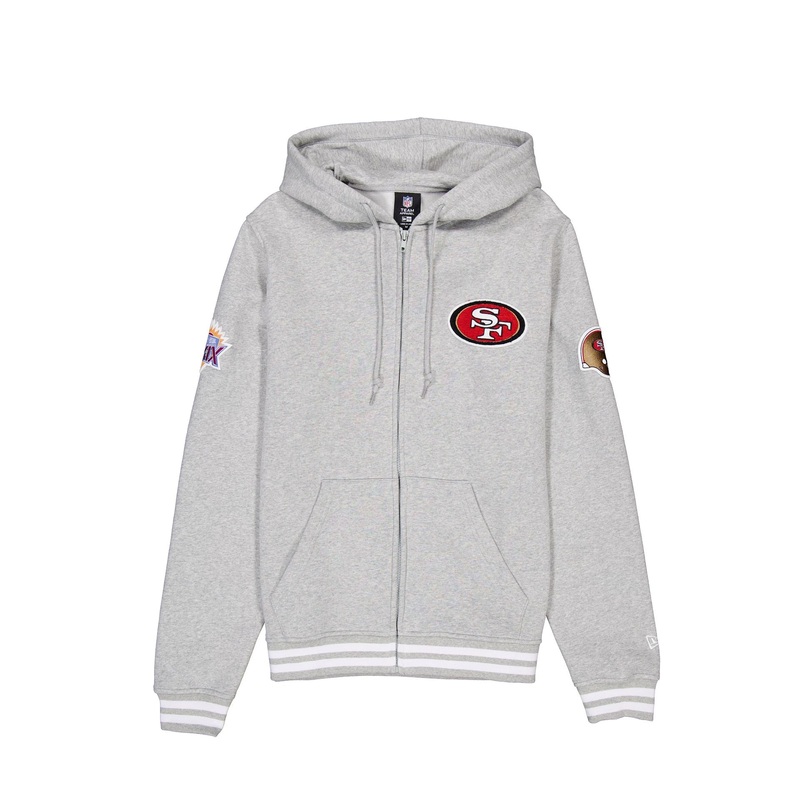 The San Francisco 49ers Gray Logo Select Full-Zip Hoodie features a chenille applique 49ers logo at the left chest with an alternate team logo patch embroidered at the left arm and a Super Bowl XXIX patch at the right arm.Fabric: 80% Cotton, 20% Polyester