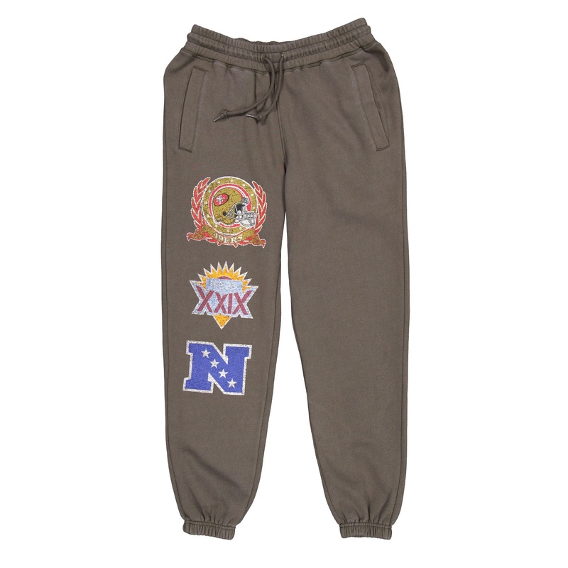 The San Francisco 49ers Oversized Essentials Sweatpants features a distressed screen-printed 49ers logo with a Super Bowl XXIX graphic and an NFC logo at the right leg.