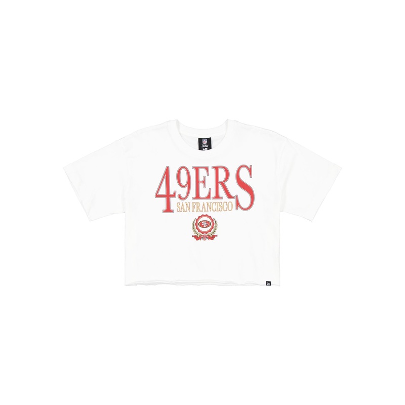 The San Francisco 49ers Throwback Prep Women's Cropped T-Shirt features a screen-printed 49ers wordmark above a team emblem at the front.Fabric: 100% Cotton
