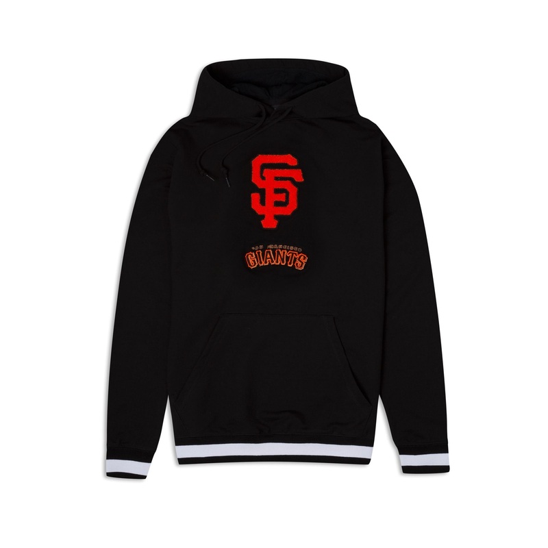 The San Francisco Giants Logo Select Black Hoodie features a chenille applique Giants logo above an embroidered team wordmark at the chest.