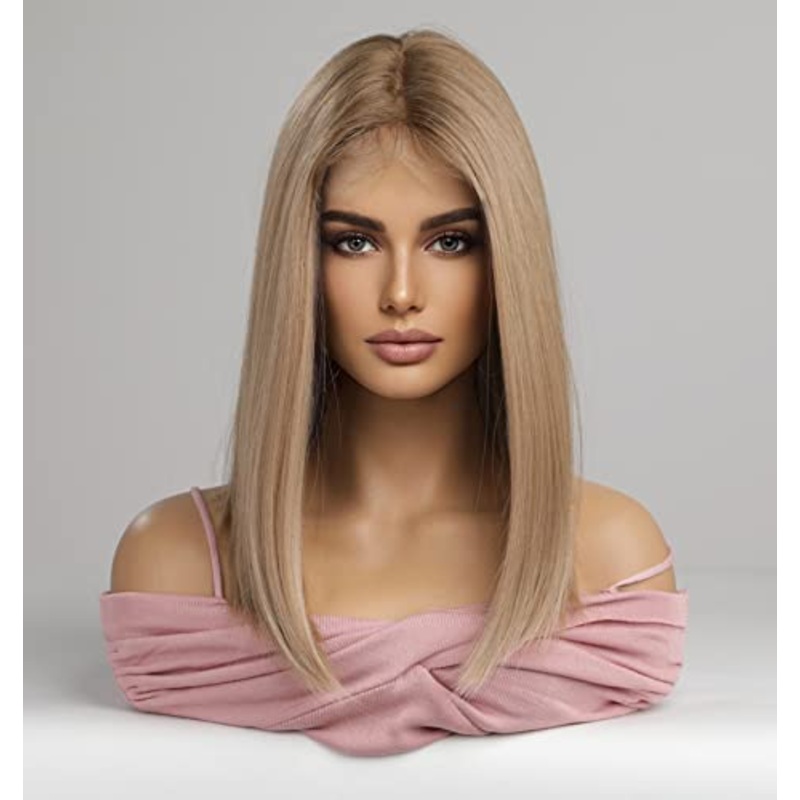 Sandy Blonde Bob Cut Lace WigLength:12 InchNet Weight:280Size:Average(22.5inch)Half Hand Tied Lace Parting Space in Front