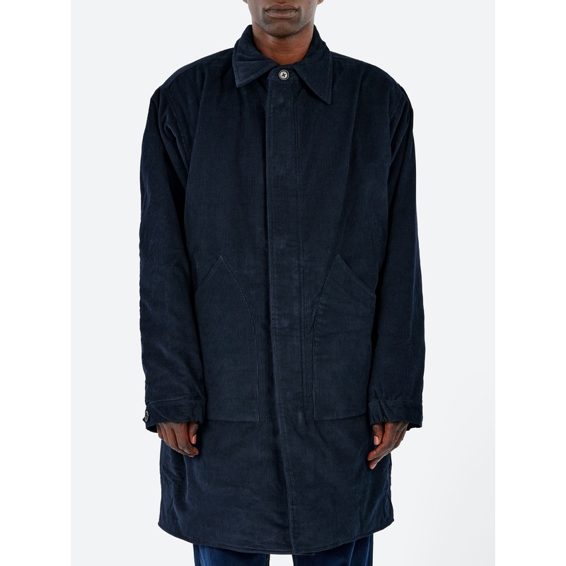 The Santos redraws the M-65 Field Jacket with restraint. Cut straight through the body, it falls with a slow, uninterrupted line from shoulder to hem. The collar is kept low and the surface spare, allowing it to shift easily between open and closed.14 wale
