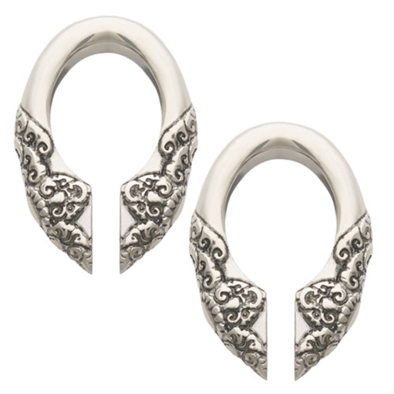 These sapon ear weights are cast from solid brass by Diablo Organics. They’ll fit stretched ear lobes sized 7/16-inch or larger. These are available in white brass only.